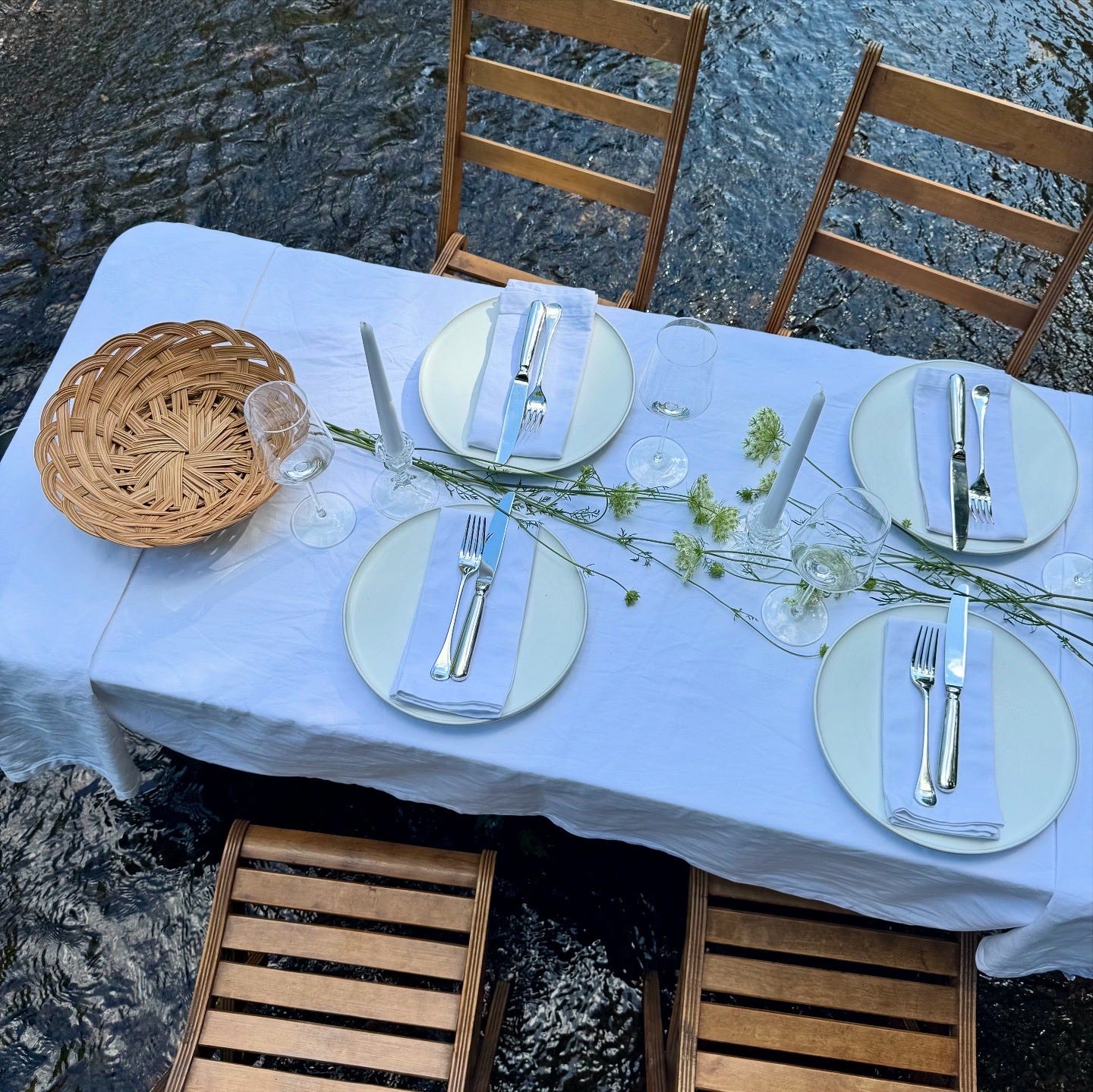 Before the warm weather slips away, why not try something whimsical and in my case (slightly ridiculous). Like setting a table in the creek next to your house upstate. I did this with my friend Katie. It was hot, magical, and deeply joyful.